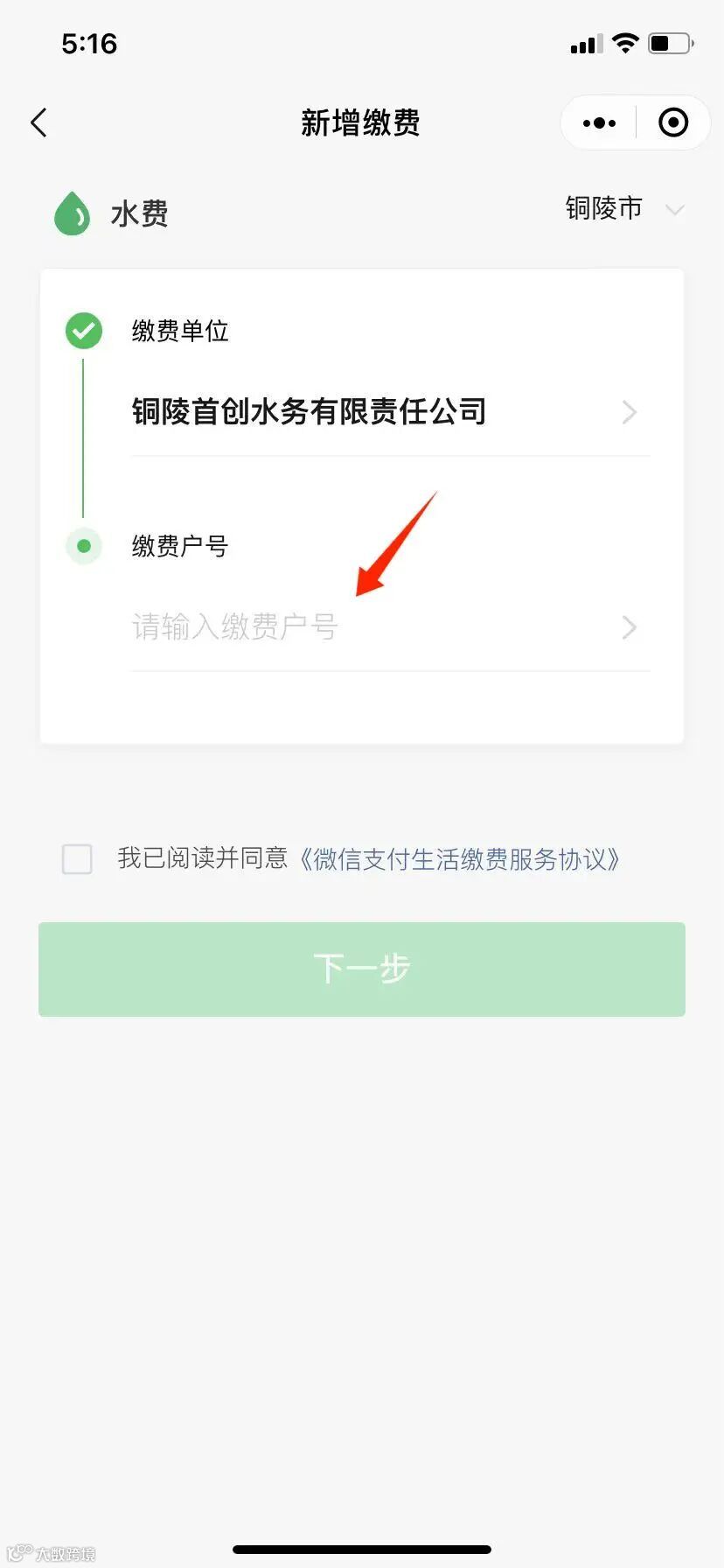 第五步:输入缴费户号
