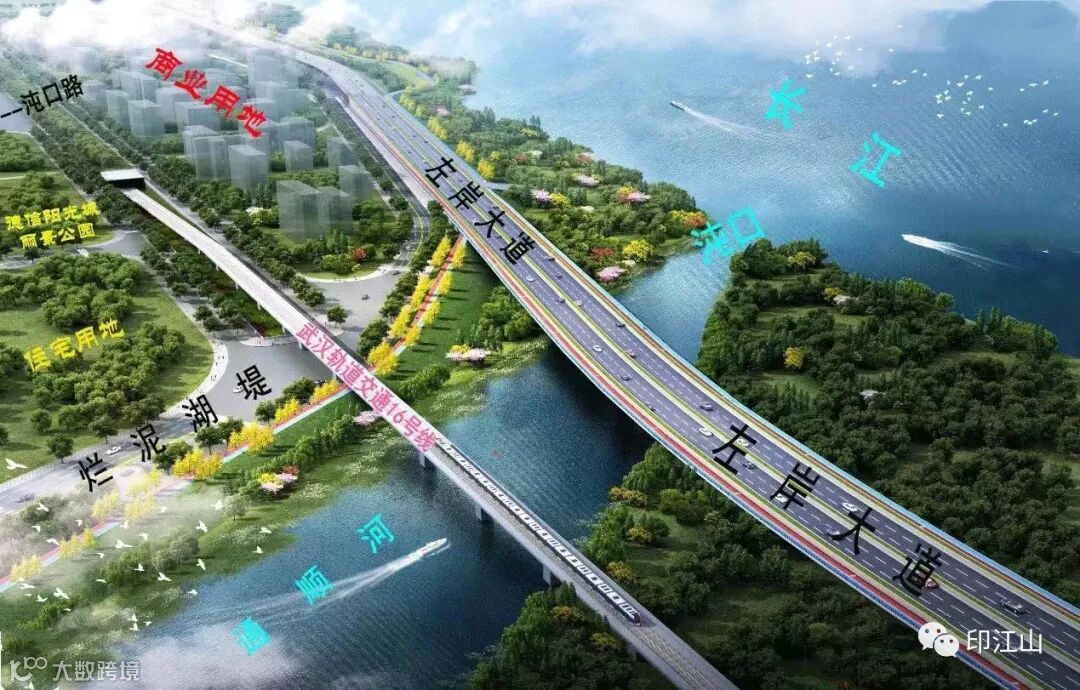 左岸大道长河段全长约6.5公里,与“最美观江地铁”轨道交通16号线并行,采用道路-桥梁-道路形式,以交通功能为主,兼具观景、游憩综合功能,建成后将成为为“最美左岸大道”。
