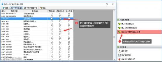 设置好扩展项目后,需要把科目和扩展项进行关联。首先收入的科目有【上级补助收入】和【捐赠收入】