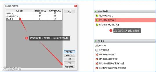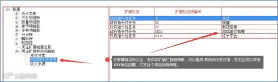 凭证扩展项的明细账贷方为收入,借方为支出,余额表示这个项目还有多少钱未使用完。如果预算会计也同时勾了政府指令性任务,那么会显示重复支出,可以在工具栏上选择财务凭证或预算凭证。