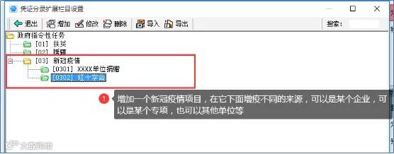 有关于疫情的收入来源有多种情况:一种是捐赠收入,另一种上级单位的专项补助,如果是财政的专项补助直接记入财政专项收入,按专项核算即可。对于捐赠收入和上级补助的专项补助如何在软件中反映?我们卫医通系列软件均可以设置凭证的扩展项来反映,不需要再设置一个单独的辅助核算。凭证扩展项比辅助核算更灵活,不需要考虑结转的问题。
