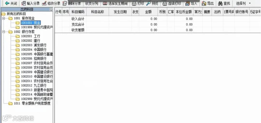 后台命令将出纳1001科目下的序时账转到1001001明细科目,问题迎刃而解。