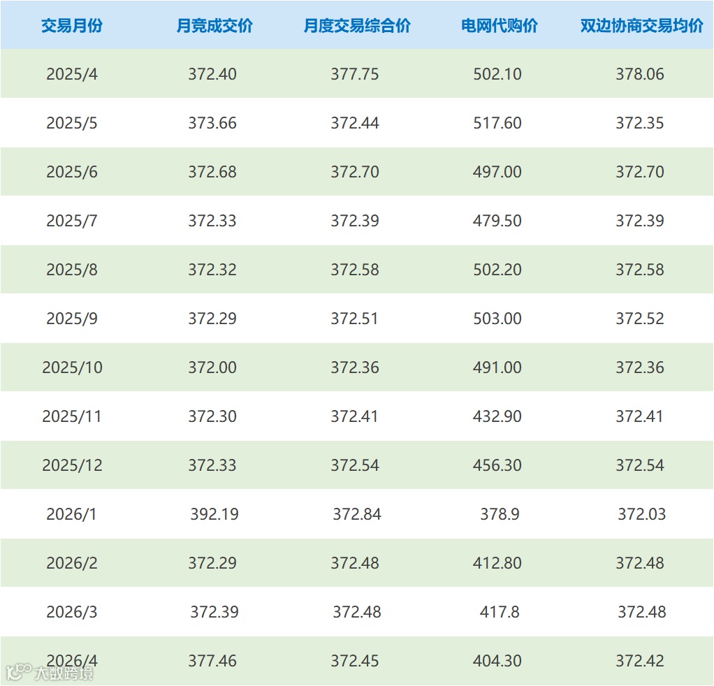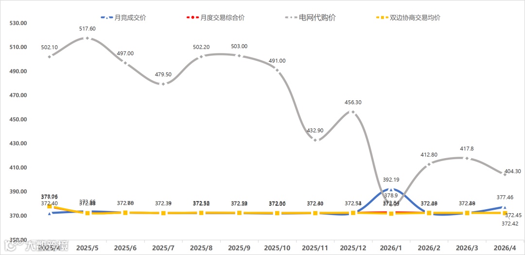 月竞成交价、月度交易综合价、电网代购价