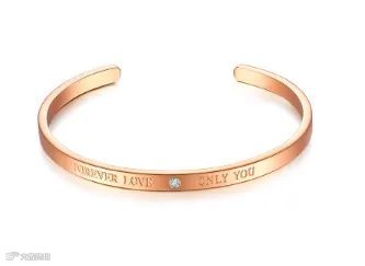 2022最佳首饰盒担当来咯~百看不厌的简约时尚感,贴合手腕弧度设计,加上开口设计,佩戴舒适便捷,立体圆环经反复打磨,流转金属光泽,浪漫镌刻唯爱英文,再点缀钻石,更添风采!单戴秀气十足,还能搭配手链,T恤衬衫毛衣搭配起来都各有韵味~