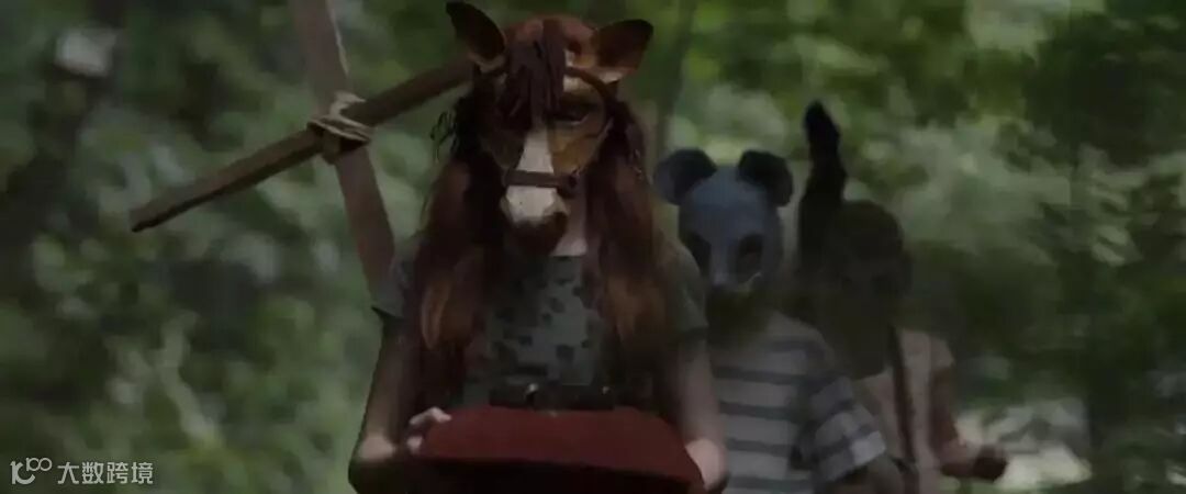 一群带着诡异面具的孩子抬着一条死去的狗,不知去向何处。