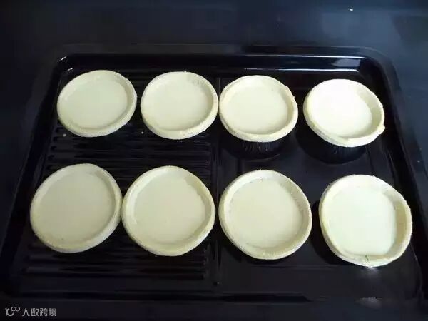接着将蛋液分别倒入挞皮中,倒七分满即可
