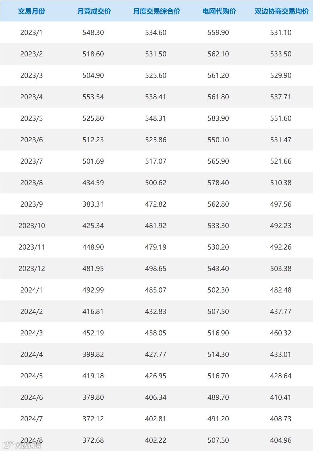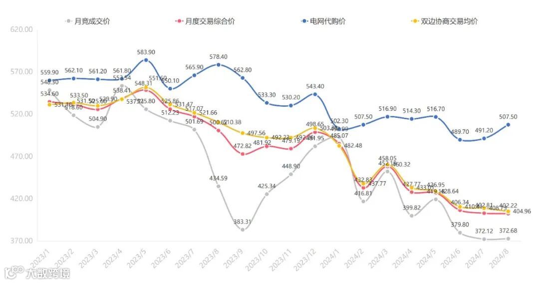 月竞成交价、月度交易综合价、电网代购价