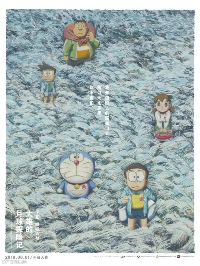 从海报上的文字我们大概能看出这次探月之旅并不是一帆风顺的,但无论有多少困难,只要坚守信念,勇敢向前,哆啦A梦和伙伴们一定能够再次度过难关。