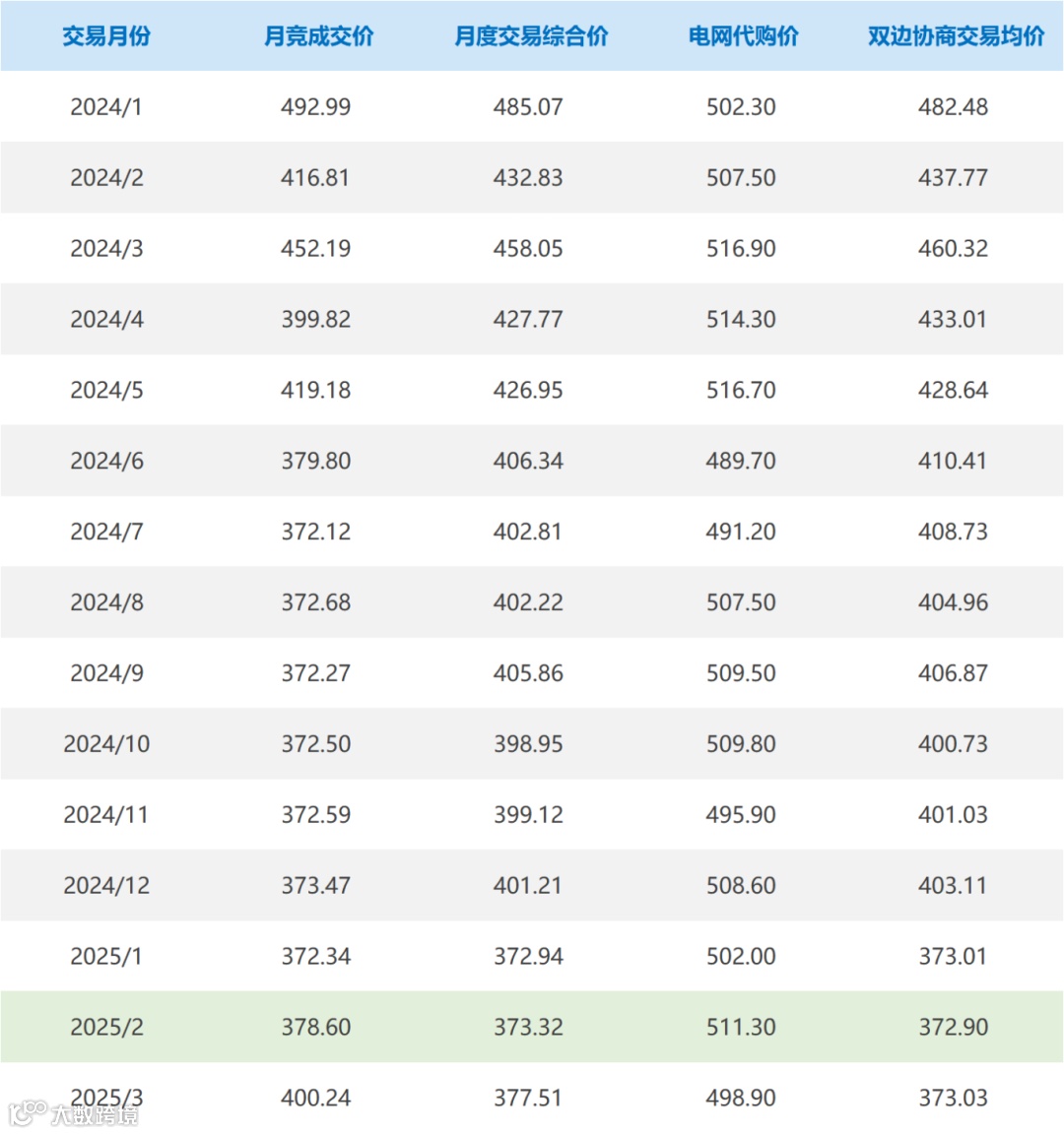月竞成交价、月度交易综合价、电网代购价