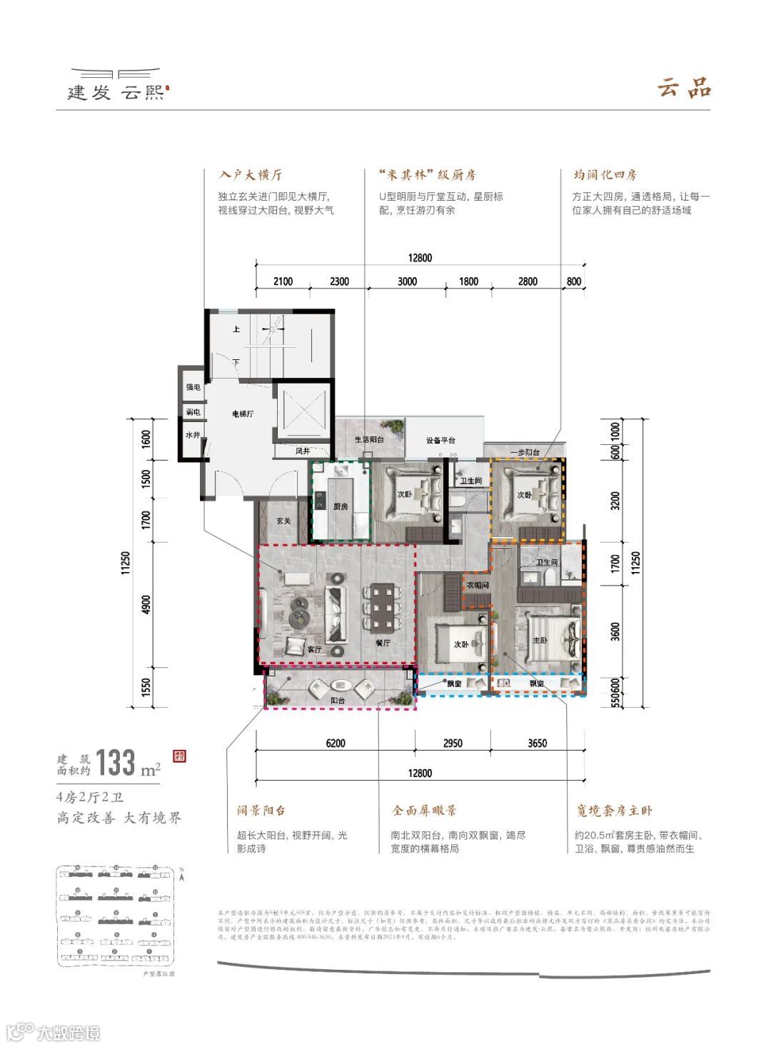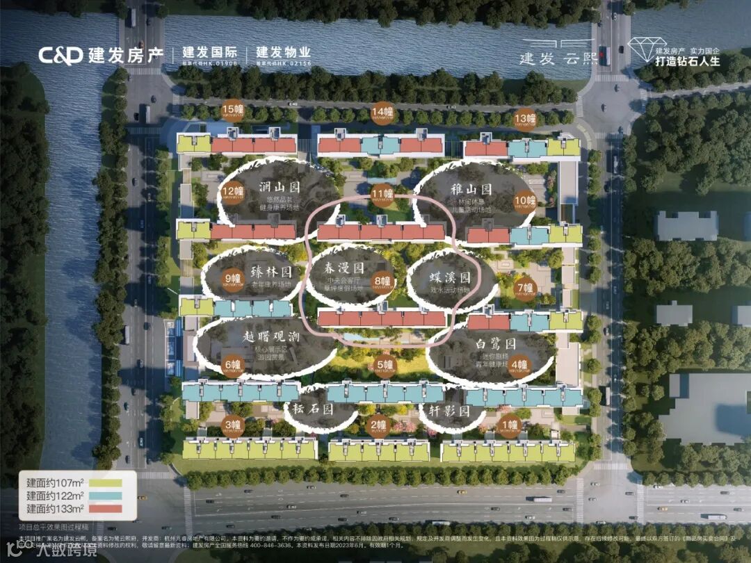 本项目推广案名为建发云熙,备案名为鹭云熙府,开发商:杭州兆睿房地产有限公司。本资料为要约邀请,不作为要约或承诺,相关内容不排除因政府相关规划、规定及开发商调整而发生变化,买卖双方的权利义务以双方签订的《商品房买卖合同》为准;对项目周边环境、交通、教育及其他配套设施的介绍,旨在提供相关信息,不意味着本公司对此作出了承诺;本宣传不对学区及入学条件做任何承诺,学校划分及入学条件以政府相关部门最终批准方案为准。本资料效果图为过程稿仅供示意,存在后续修改可能,最终以双方签订的《商品房买卖合同》及实际交付为准;公司保留对宣传资料修改的权力,敬请留意最新资料;预售证号:余杭房预许字(2023)第00494号。建发房产全国服务热线 400-846-3636。本资料发布日期2023年9月。有效期1个月。交付标准以《商品房买卖合同》为准,受制作批次、市场变化等限制条件或开放商不可控制的原因,开发商在保证以上建设质量的情况下可能进行更换品牌,如有变动,恕不另行通知。