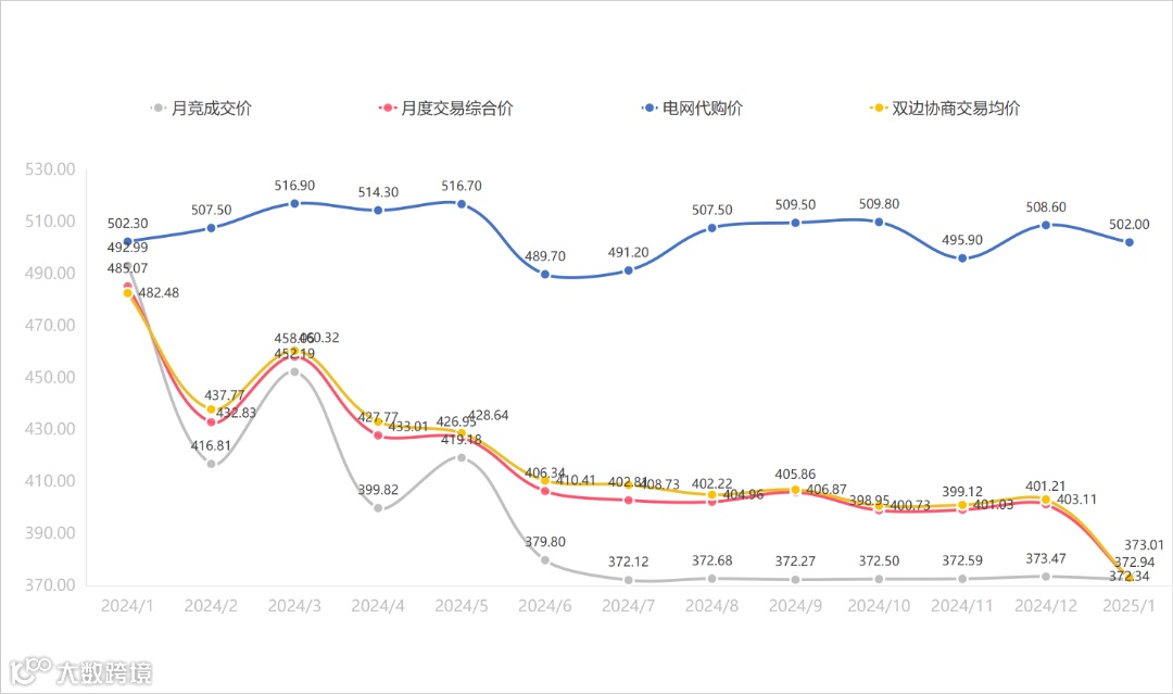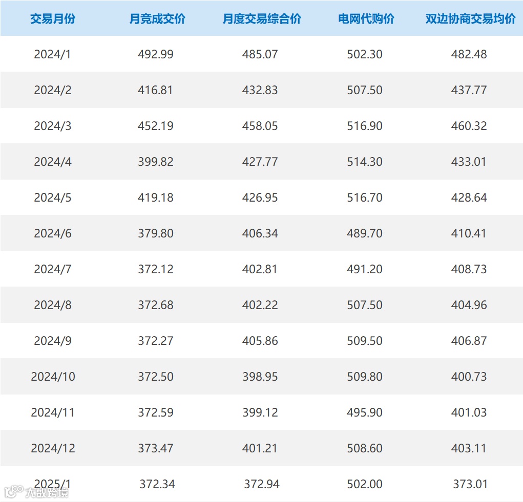 月竞成交价、月度交易综合价、电网代购价