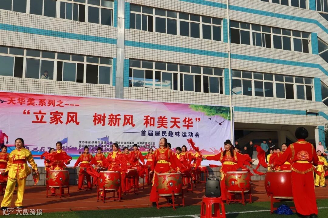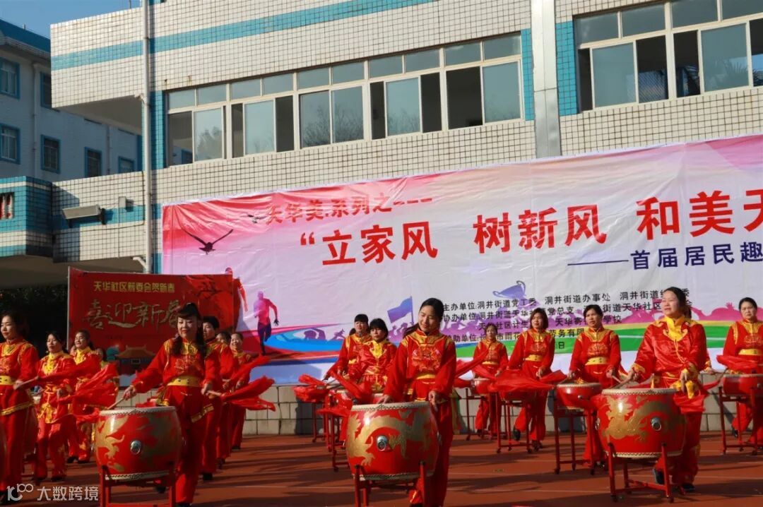 咚咚锵,咚咚锵……为推行健康阳光生活方式,提升居民群众的健康品质,传承好家风,淳化好民风,弘扬新风尚,2019年1月23日上午10:00,一场文明健康、别开生面的全民趣味运动会在洞井街道天华社区筹委会上演,高亢的天华威风鼓拉开了活动的序幕。