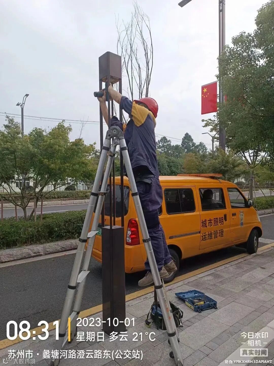 升旗仪式于10月1日上午8时整准时开始,随着值班领导一声口令,雄壮嘹亮的国歌声响彻云霄。升旗手拉动升旗绳,国旗缓缓升起,迎风飘扬,参与人员面向国旗行庄严的注目礼,表达了对祖国最崇高的敬意。