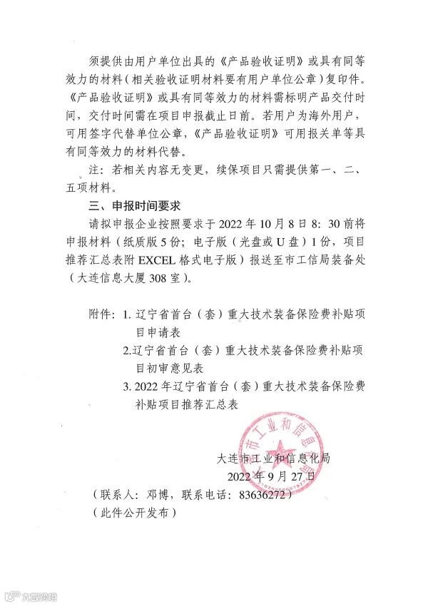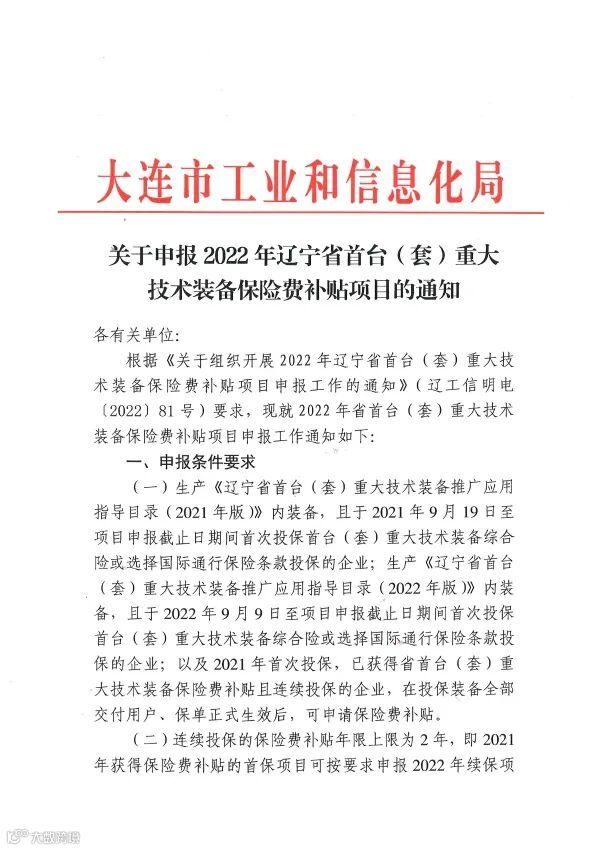 柏泉慧新闻资讯 || 关于申报2022年辽宁省首台(套)重大技术装备保险费补贴项目的通知