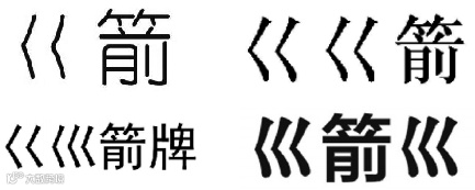 “巜”读音为“kuài”,意为田间水沟,“巛”读音为“chuān”,含义同“川”。暂且不论其傍名牌的用心,这类汉字与常用字组合申请商标时,也会因字形过于简单,审查中除常规审查外还需加立汉字分卡“箭”“箭牌”,对其进行近似检索。