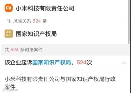 据悉,小米近几年频繁起诉国家知识产权局,次数高达524次,起诉缘由均为商标权纠纷。