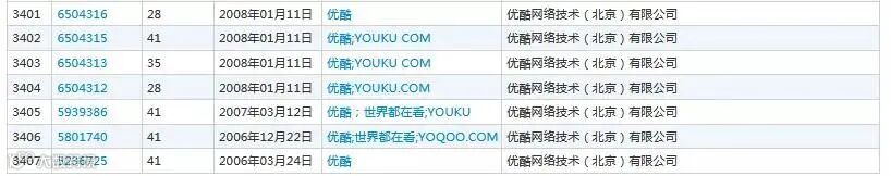早在2006年3月24日,合一公司就申请注册了第41类“优酷”商标,目前该商标已变更至优酷公司名下。随后,优酷公司或者合一公司又陆陆续续注册了多个“优酷”相关商标。