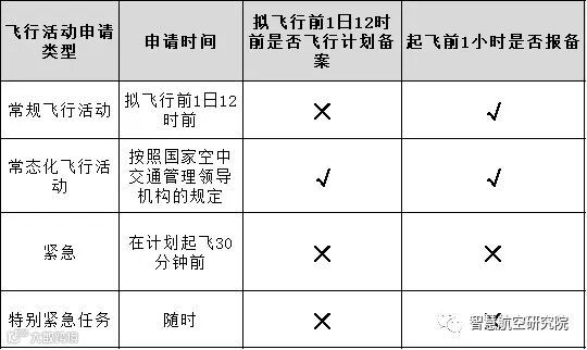 管制空域飞行活动申请要求见下表: