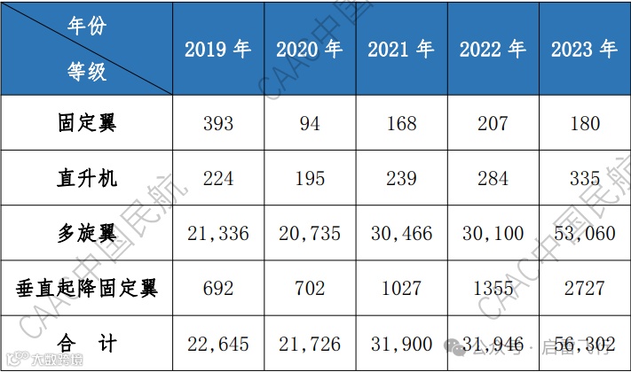 无人机操控员执照数量统计