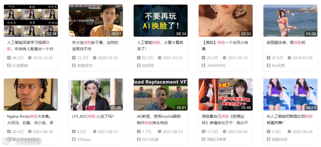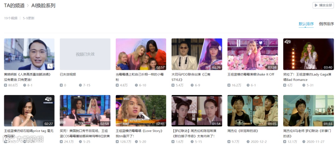 技术普及之后,在B站上许多up主也开始制作相关视频,其中大多数是将明星的脸换到不同视频中,从播放量来看,这些视频传播度都不低。