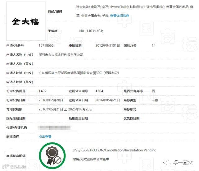 经查询,“金大福”商标遭到了无效宣告,但是本次无效宣告并非“金大福”商标遭遇的第一次无效宣告,在2019年09月17日,“金大福”商标被第一次提出无效宣告。