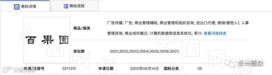 深圳百果园公司始于1997年,正式成立于2002年,同年6月,申请了多件“百果园”商标,包括被称为“万能商标”的第35类,用于广告宣传等服务。而后,深圳百果园公司又陆续在其他类别对“百果园”商标进行了申请和保护。