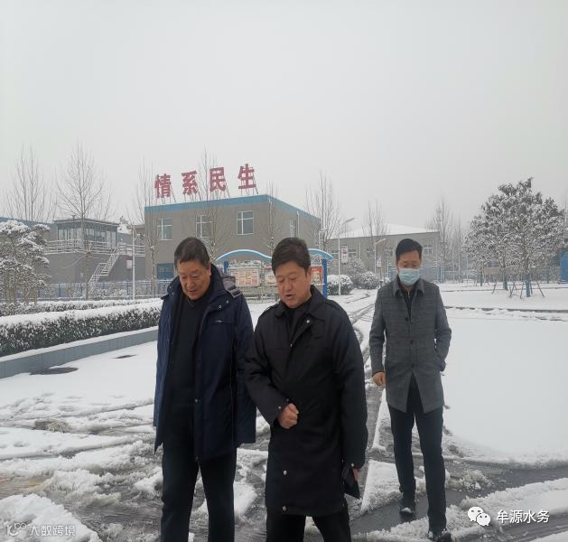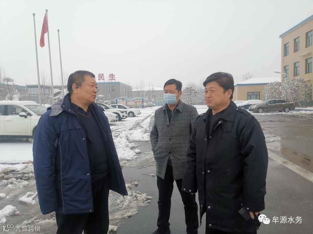 1月22日上午,中牟县水利局局长樊守峰、副局长龚占强一行到公司检查应对低温雨雪冰冻天气安全保供工作,公司党总支书记马宏武陪同检查。