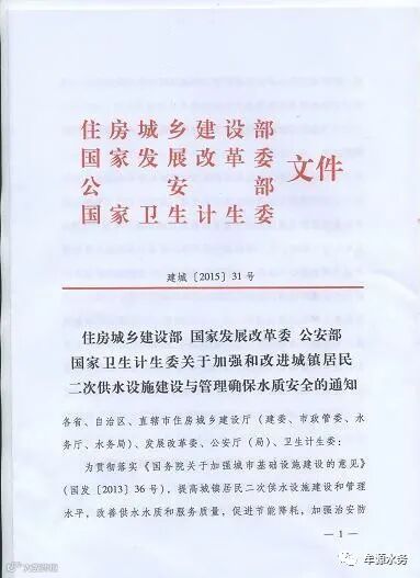 国家四部委关于加强和改进城镇居民二次供水设施建设与管理确保水质安全的通知