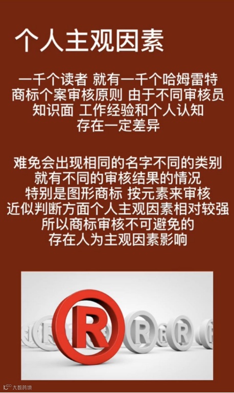 在商标查询时,对于查询到的结果,是要和申请人的商标进行近似比对的。在比对的过程中,申请者个人、代理公司的商标查询员、商标局的审查人员都有一套标准与看法,所以对于两个商标近似不近似,并没有绝对的标准,只有概率上的判断。尤其是图形商标的近似度,判断的差异性更大。