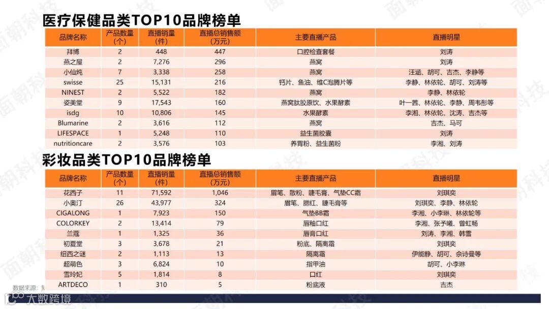 居家、亲民的属性类似李湘、刘涛,选品得以覆盖全品类,从生活日用、食品、3C数码到生活电器都可以带货;此外在某些专业领域有一定影响力的明星,对契合的品牌商而言则充满吸引力。