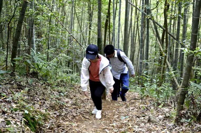 路上要穿过这种矮矮的小竹林,茂密的竹子叶阻挡了大部分阳光照射,光束穿梭在林子间,跳跃到每一位小伙伴的身上。空气中散发着一丝丝春天的味道,舒服,清爽。