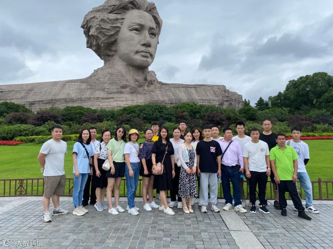 6月17日下午,长沙第二站:橘子洲头。橘子洲乃湘江名洲,由南至北,纵贯江心,西瞻岳麓,东临古城。长沙必打卡点之一。从园区门口走到橘子洲头景区大概需要1个小时脚程,体力不济的小伙伴选择了坐可爱的观光车,其余博皓小分队沿着湘江风光带,走到橘子洲大桥,在人行道上走走停停,聚集在毛主席雕塑下。看着这栩栩如生、昂首挺胸、气势十足的毛主席雕塑,看着这般广阔天地,霎时便理解了为何毛主席在《沁园春.长沙》中写道“怅寥廓,问苍茫大地,谁主沉浮 ”---带着千万种思绪一齐涌上心头的感慨,问道:这苍茫大地的盛衰兴废由谁来主宰呢?