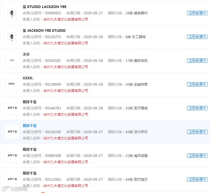 据企查查搜索得知“荣耀美肤”申请类别为44类医疗园艺范畴,商标状态为注册申请中。之前也申请过多次不过都是被一一驳回。