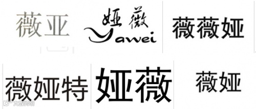 引证商标分别为连江县春妮贸易有限公司、汕头市映潮实业有限公司等7家公司或自然人自2009年起申请注册的“薇亚”“娅薇”“薇薇娅”“薇娅特”等。指定使用品类均为第25类,包括服装、裤子、游泳衣、婴儿全套衣等。
