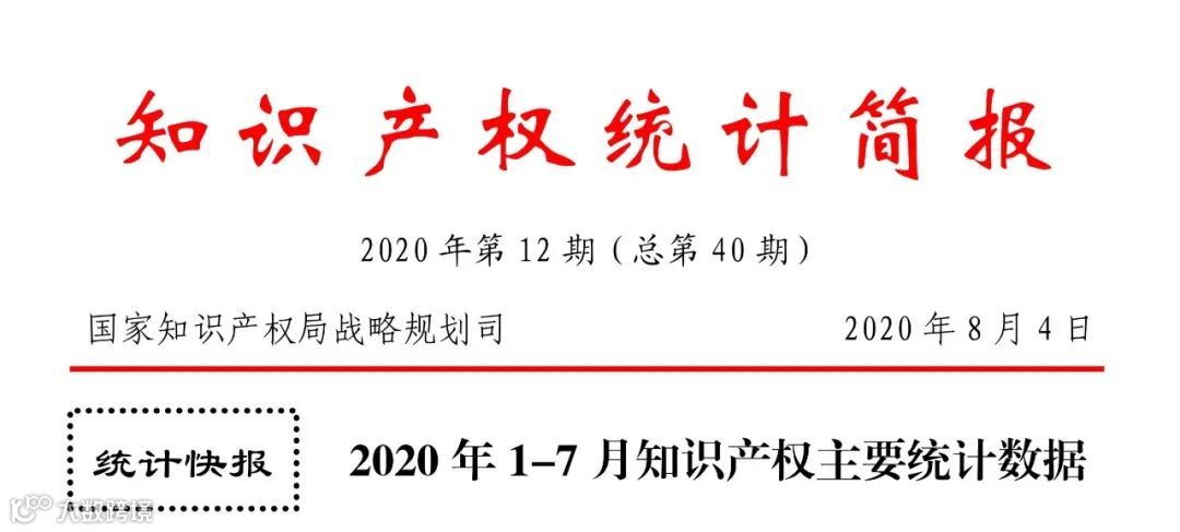 近日,国家知识产权局公布2020年1-7月知识产权主要统计数据,根据统计: