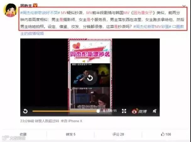近几年,影视歌曲创作屡屡爆出抄袭事件,就如去年周杰伦新歌《说好不哭》MV也曾被爆出过抄袭的新闻。