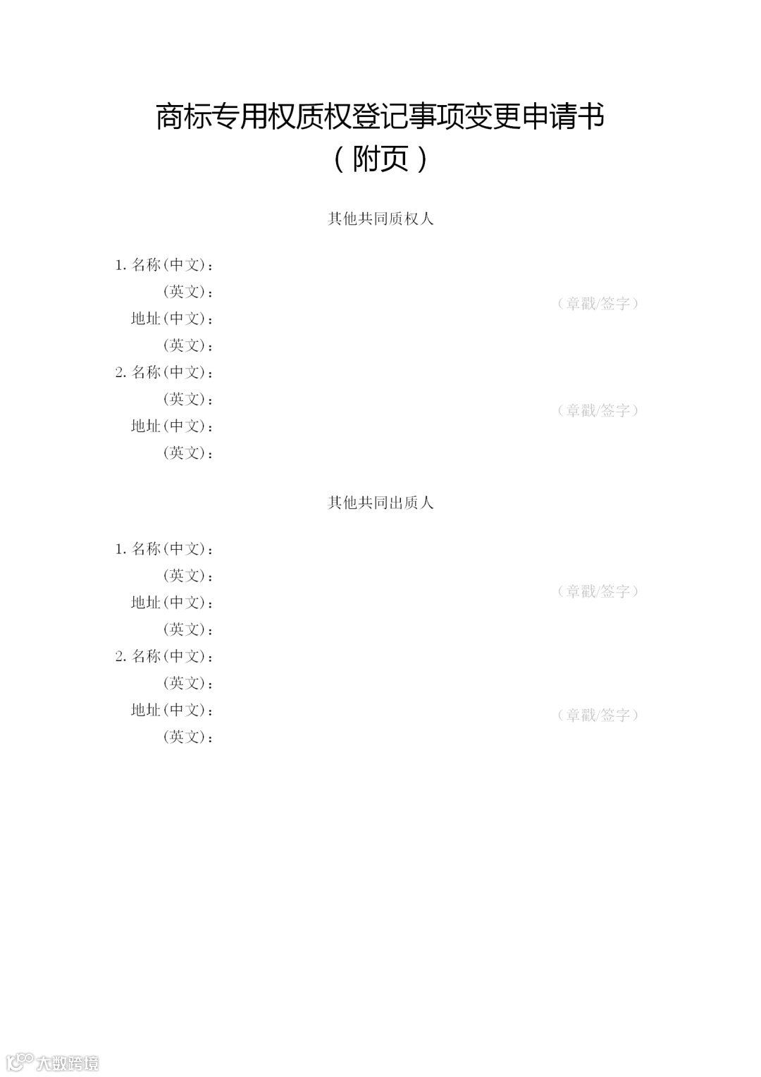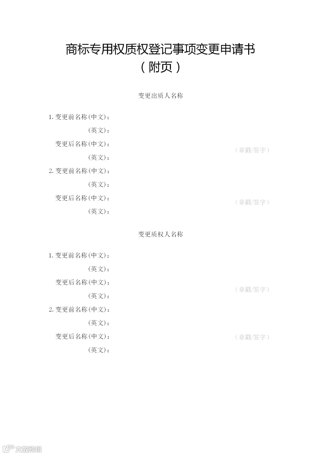 (一)申请人签字或者盖章的《商标专用权质权登记事项变更申请书》;