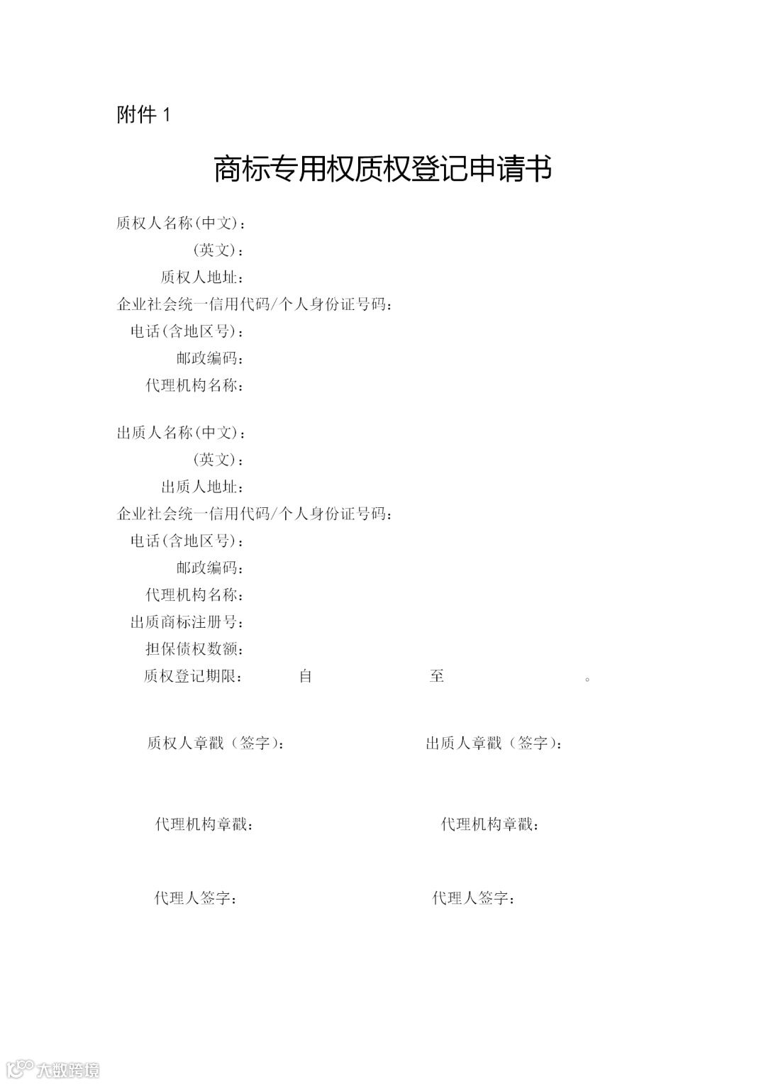 附件:1.商标专用权质权登记申请书