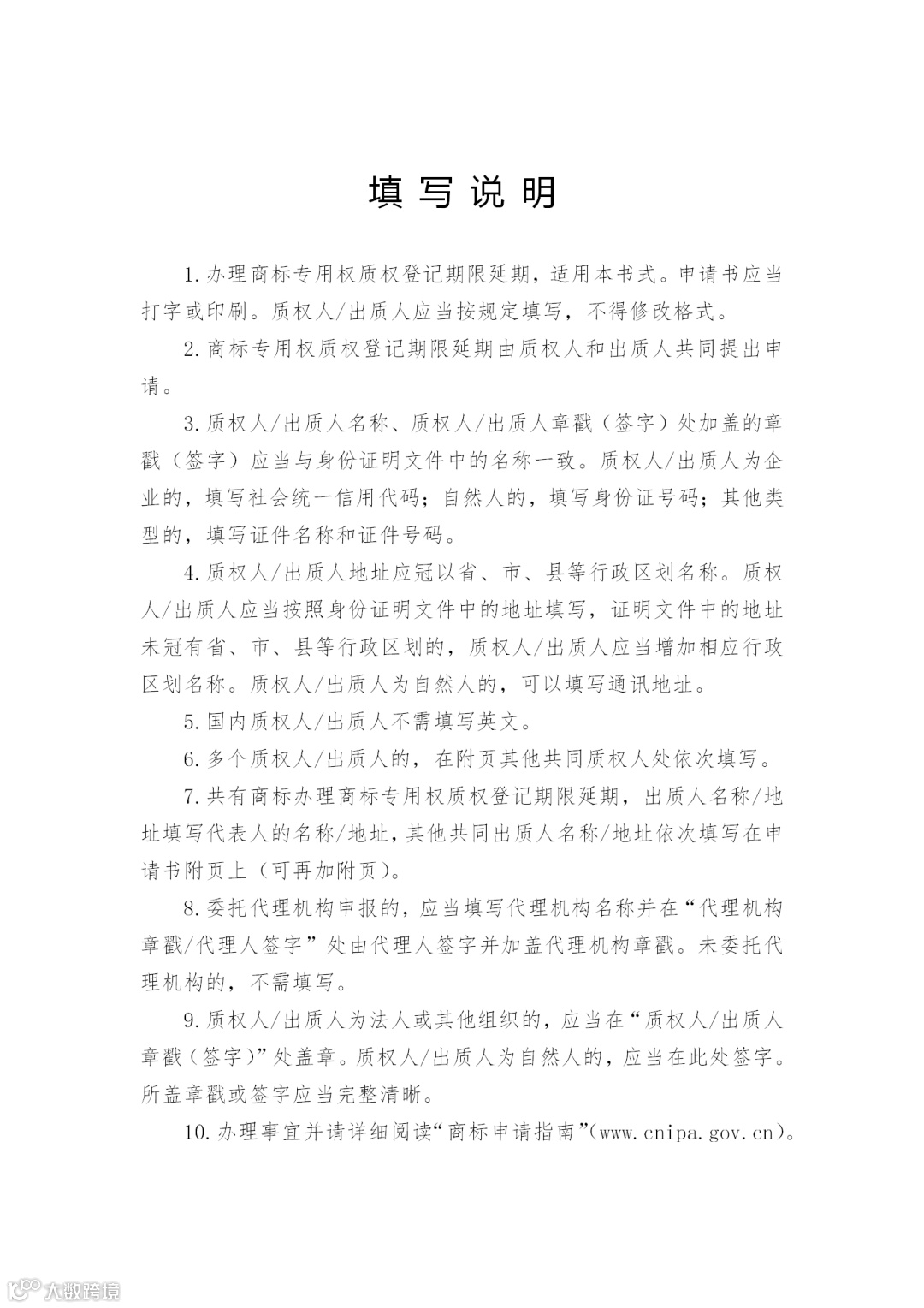 (一)申请人签字或者盖章的《商标专用权质权登记期限延期申请书》;