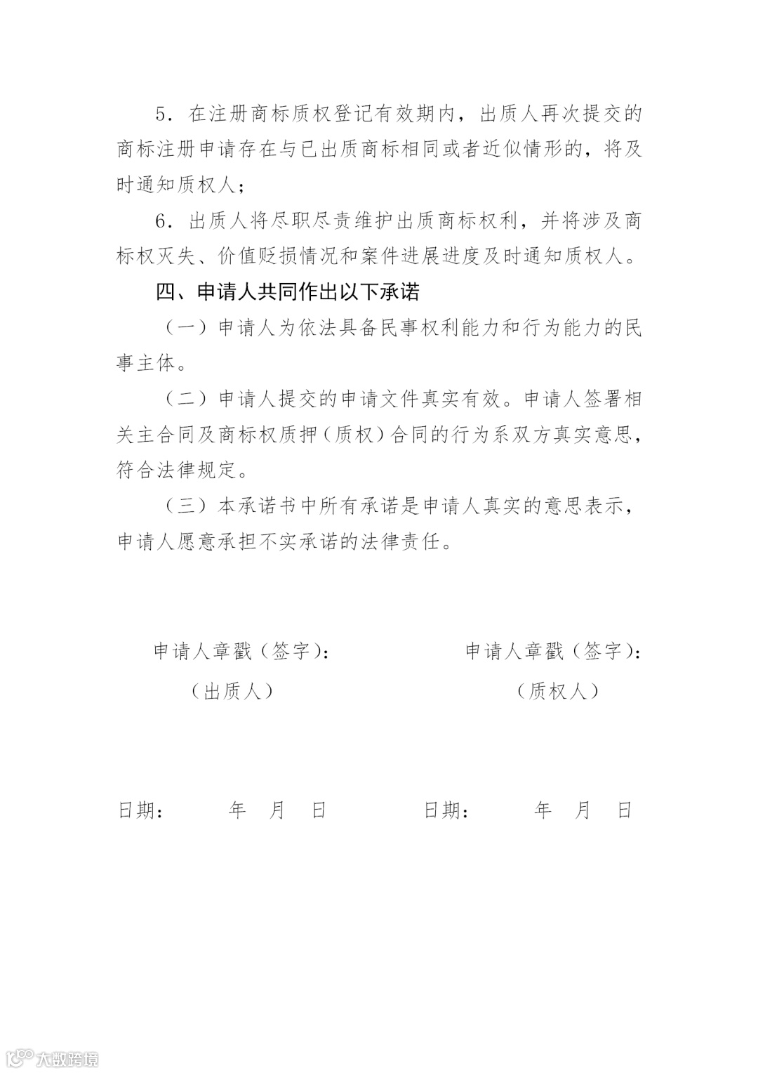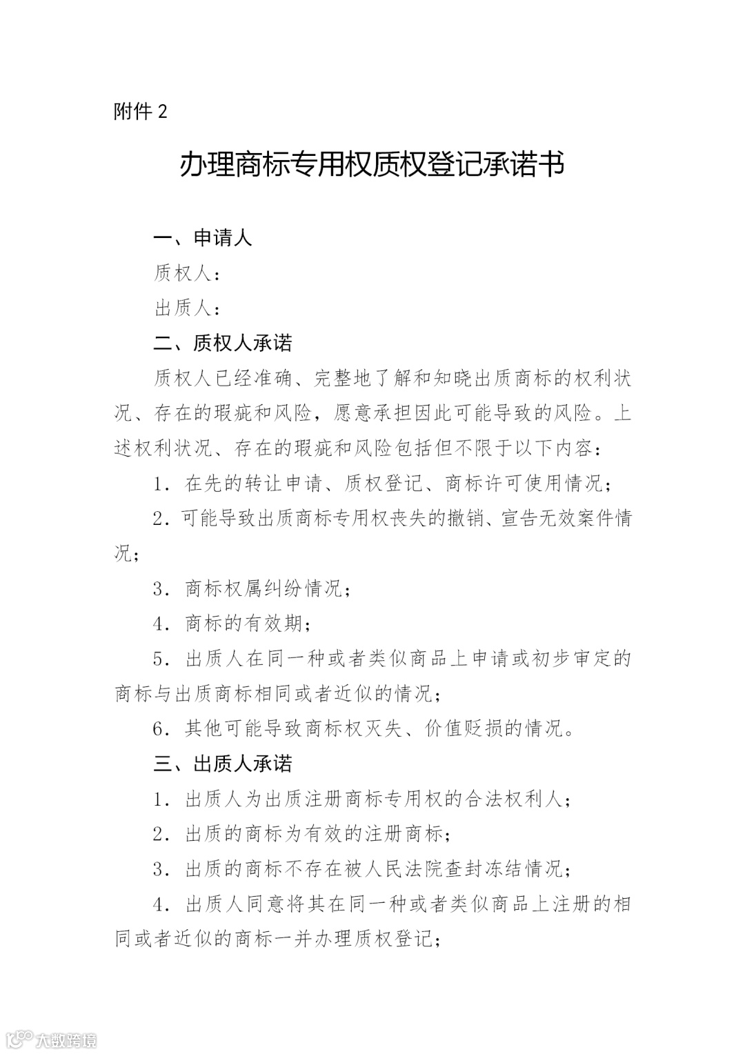 附件:2.办理商标专用权质权登记承诺书