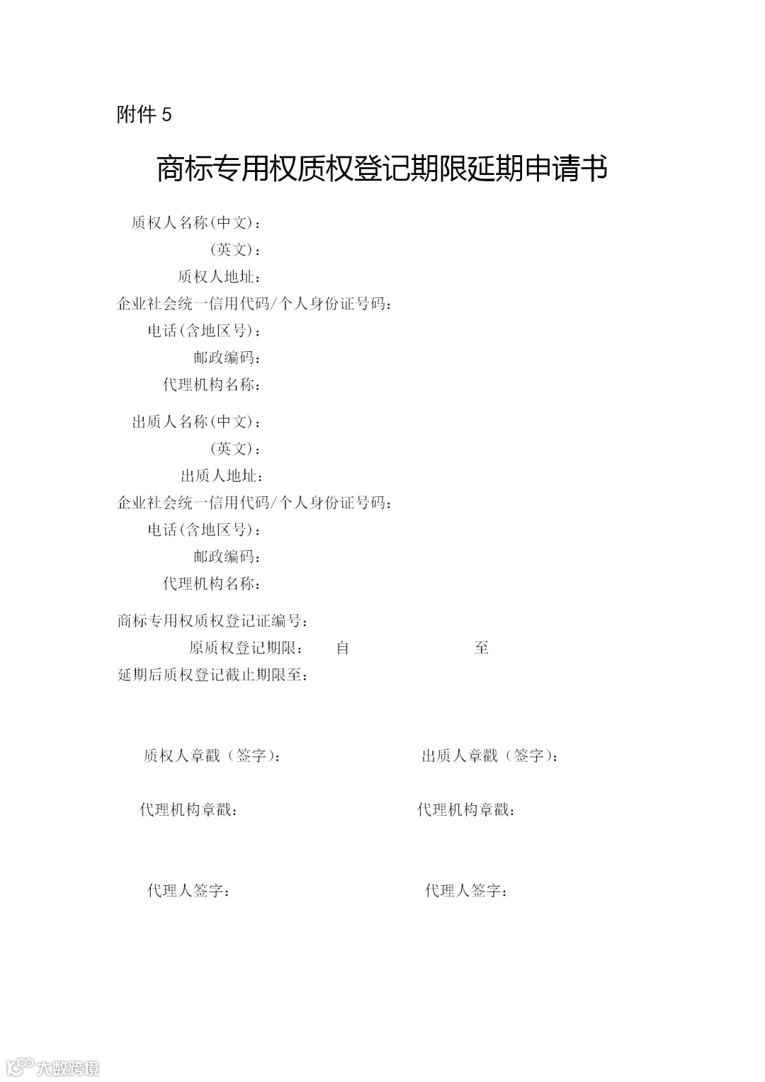 附件:5.商标专用权质权登记期限延期申请书