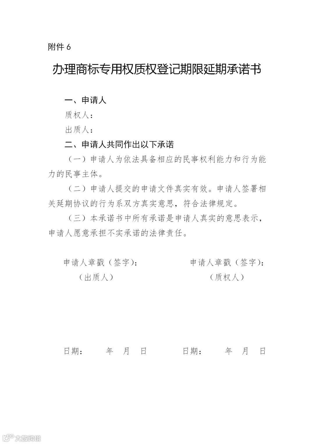 附件:6.办理商标专用权质权登记期限延期承诺书