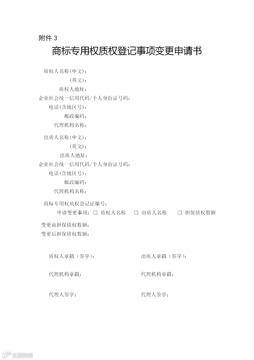 附件:3.商标专用权质权登记事项变更申请书