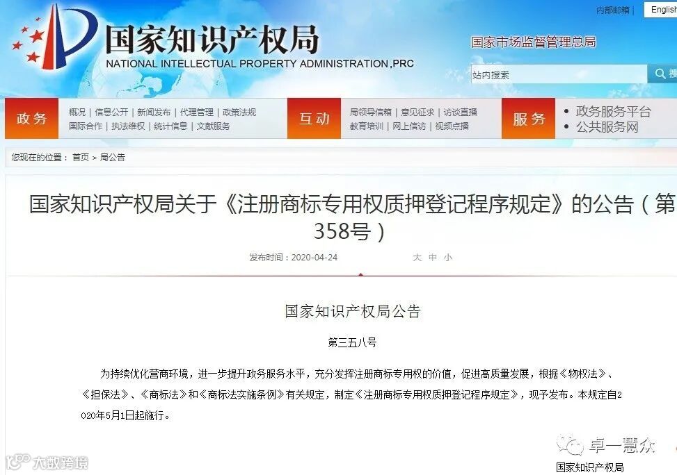 为持续优化营商环境,进一步提升政务服务水平,充分发挥注册商标专用权的价值,促进高质量发展,根据《物权法》、《担保法》、《商标法》和《商标法实施条例》有关规定,制定《注册商标专用权质押登记程序规定》,现予发布。本规定自2020年5月1日起施行。