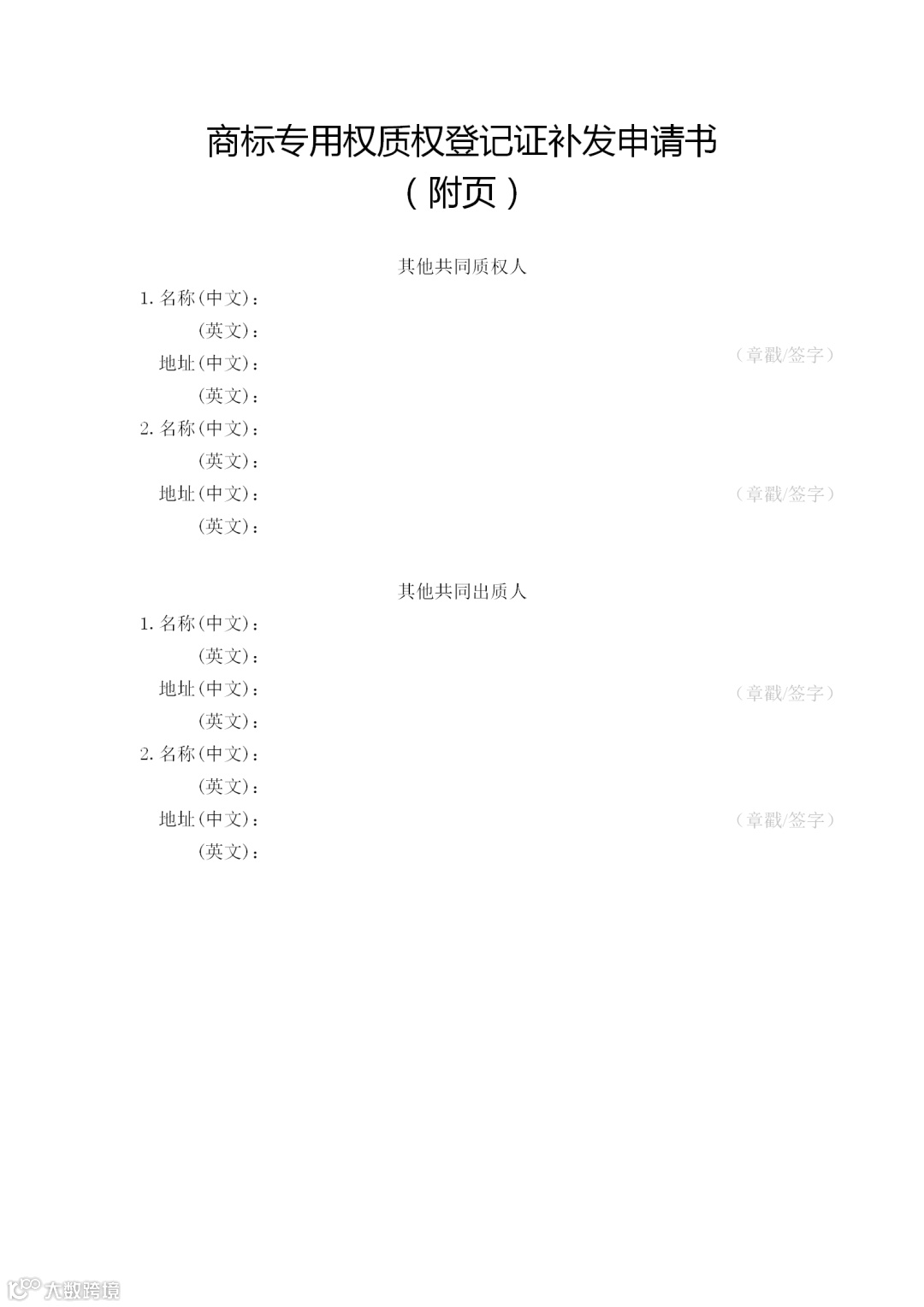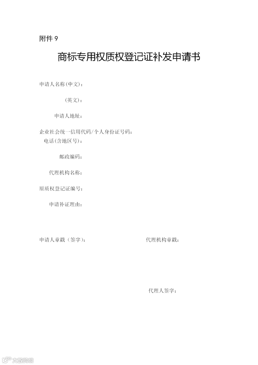 附件:9.商标专用权质权登记证补发申请书