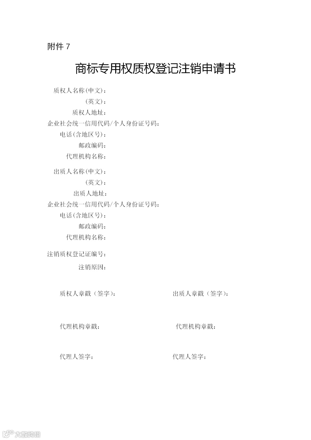 附件:7.商标专用权质权登记注销申请书