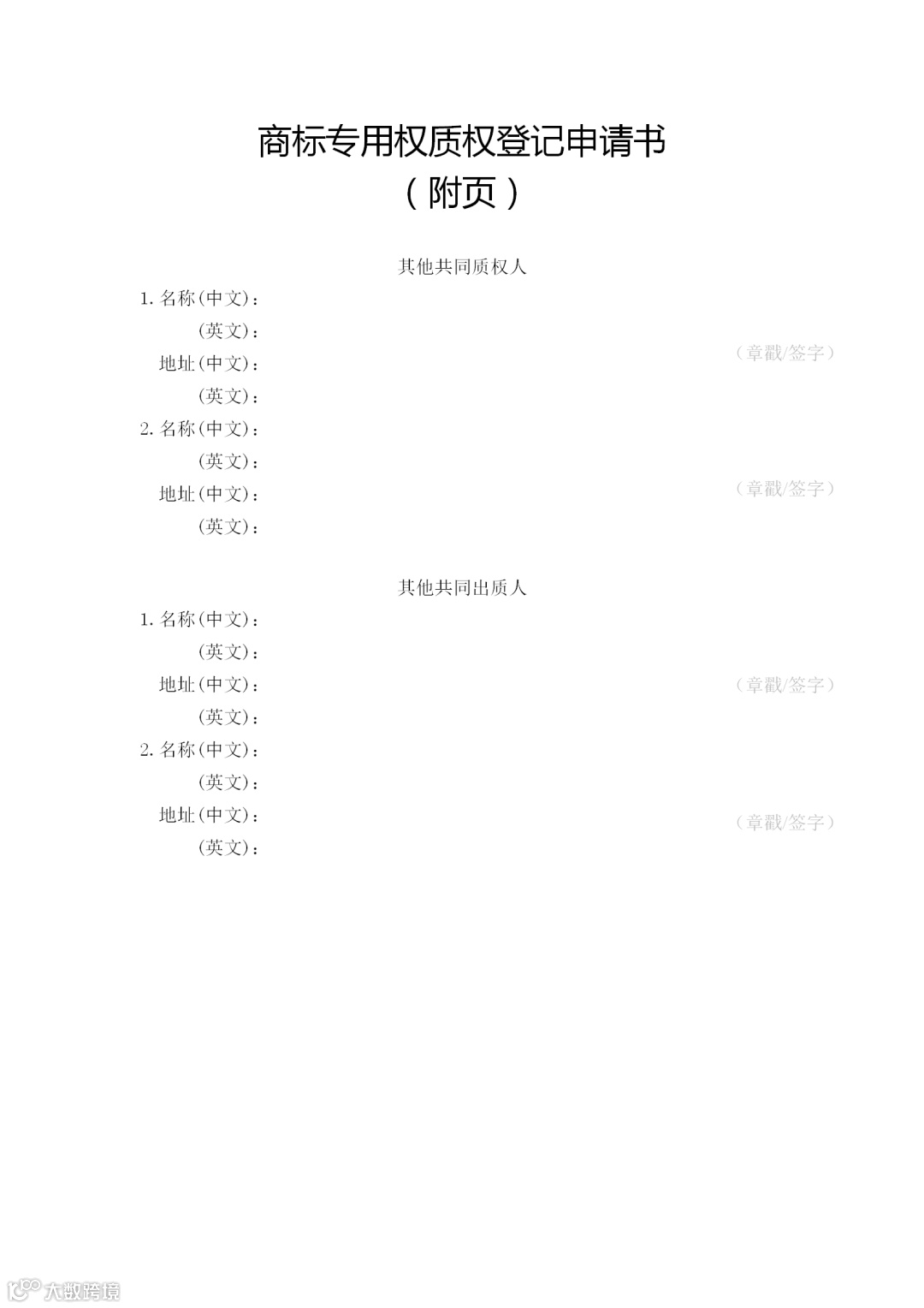 (一)申请人签字或者盖章的《商标专用权质权登记申请书》;