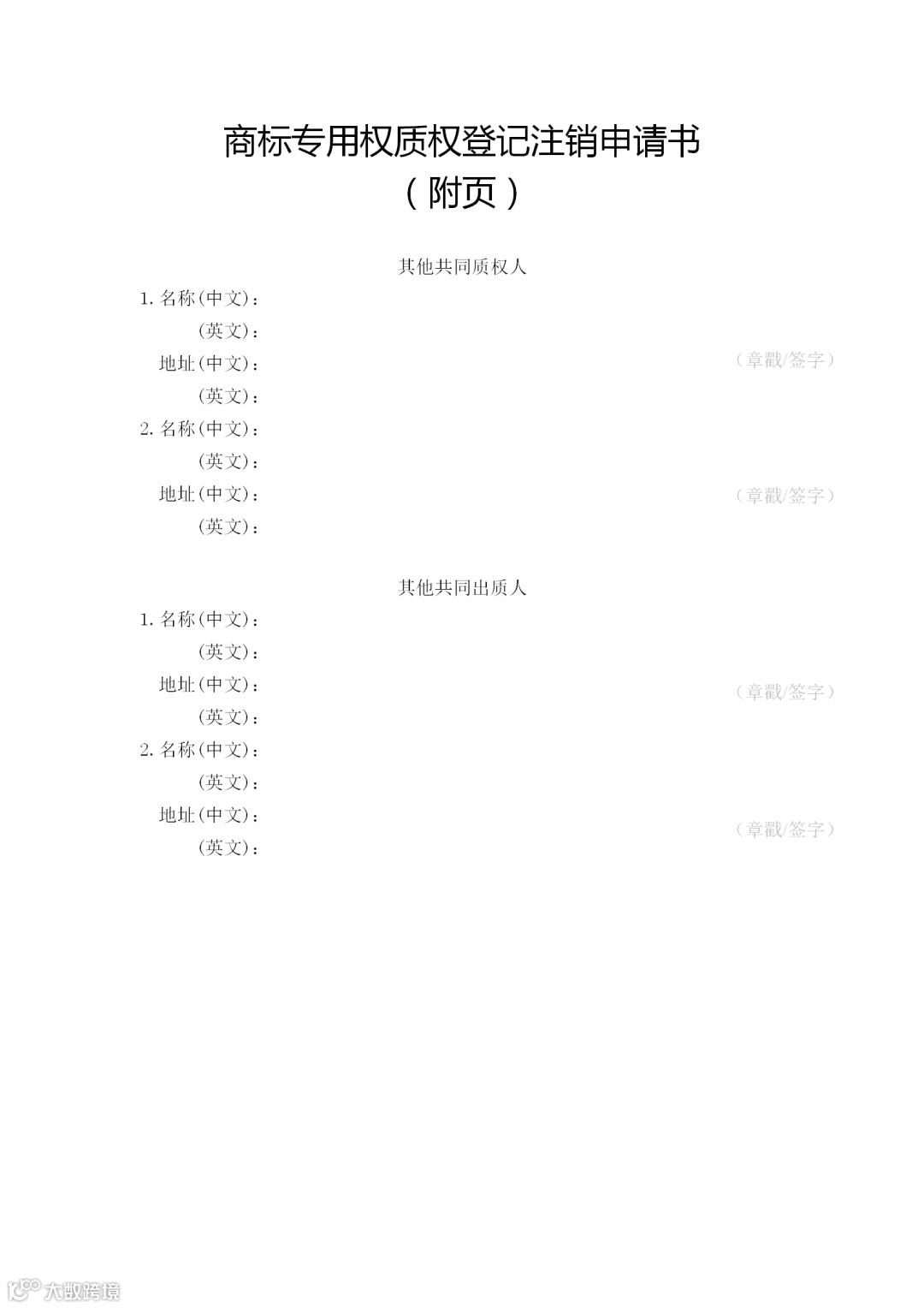 (一)申请人签字或者盖章的《商标专用权质权登记注销申请书》;