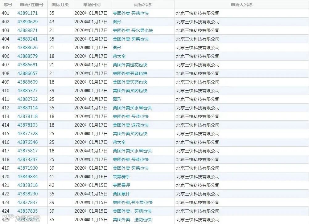 2020年伊始,美团就申请了数十枚商标。其中有“美团外卖,买药也快”、“美团外卖,买菜也快”、“美团外卖,买水果也快”等商标。美团还考虑到因为疫情不能出门,情人节表达爱意的问题,还申请注册了“美团外卖,送花也快”商标。
