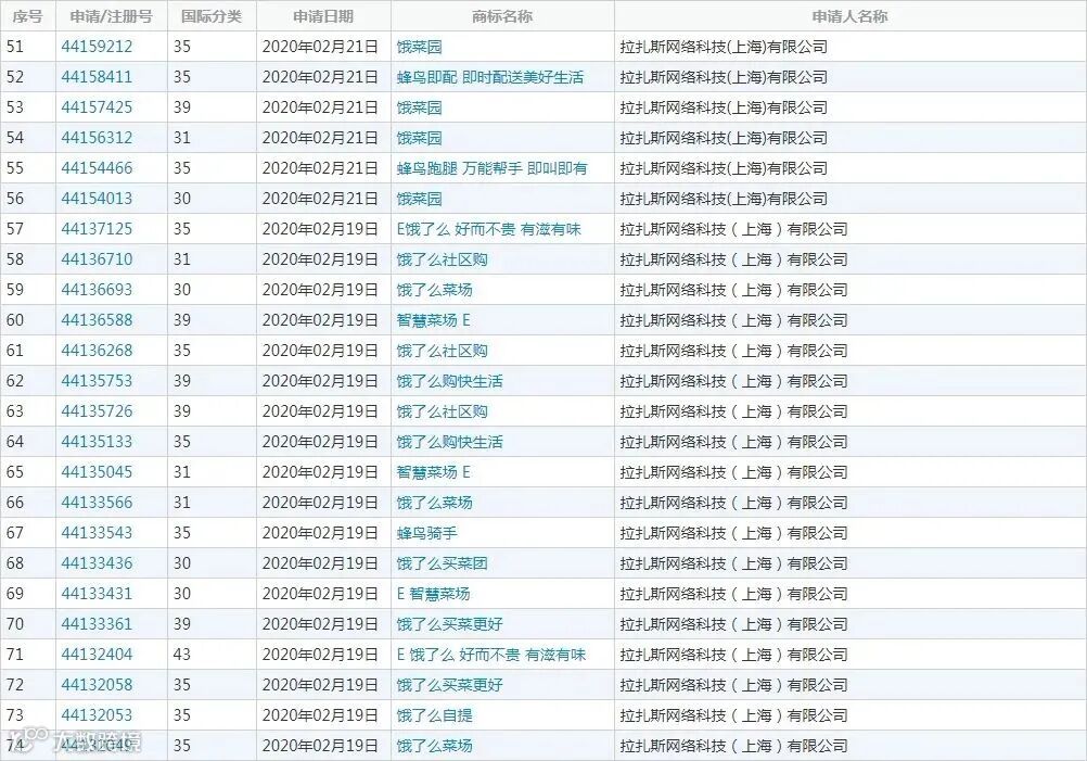 看着美团开始布局生鲜市场,外卖巨头饿了么不甘示弱,也开始申请注册相关的商标。饿了么也申请注册了相当多的商标,有“饿了么买菜更好”、“饿了么社区购”、“饿了么买菜团”等。从申请注册的名字来说,饿了么的申请商标更具有指向性,偏向于社区配送。